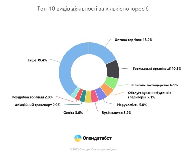 В Украине популярнейшим направлением деятельности среди юридических лиц является торговля — 23% от общего числа компаний.