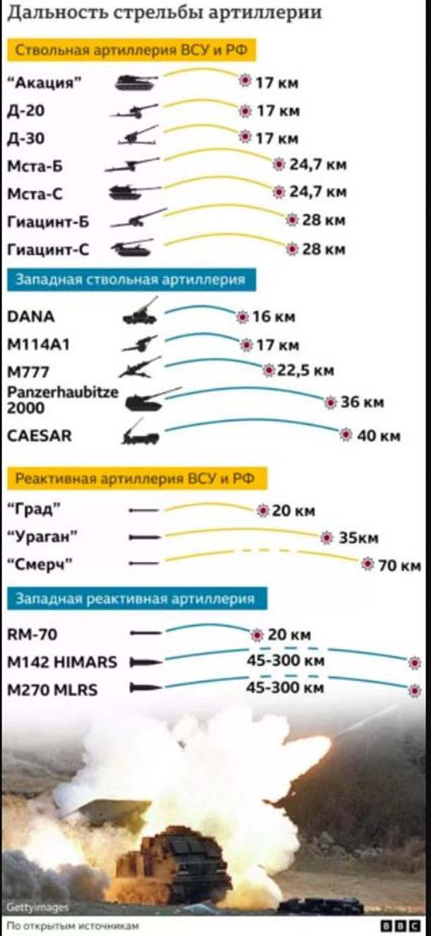Дальность артиллерии ВСУ, России и западных союзников