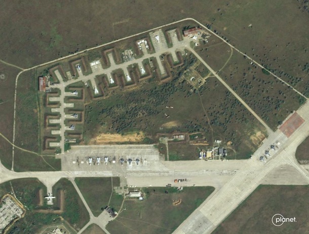 Американская компания Planet Labs опубликовала спутниковые снимки аэродрома Саки вблизи поселка Новофедоровка в оккупированном Крыму, где 9 августа произошла серия взрывов. На фотографии, сделанной 10 августа, зафиксированы следы разрушений.