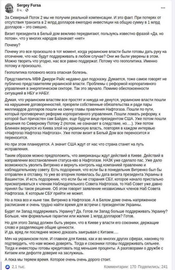 Отметим, что экономист Сергей Фурса считает предполагаемые сделкой инвестиции в один миллиард долларов смешными, поскольку за транзит Украину получала два миллиарда долларов ежегодно.
