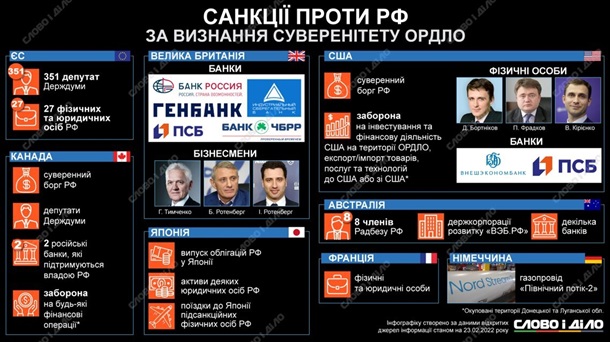 19:07 Страны ЕС еще не договорились о том, какие санкции будут введены против России в случае признания «ЛДНР», сообщает Bloomberg со ссылкой на источники.