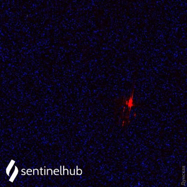 Думская также опубликовала фотографию со спутника, который зафиксировал пожар на корабле.