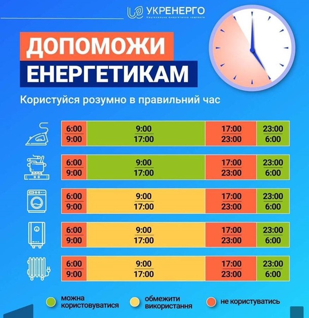 18:20 Экономить электроэнергию украинцам придется весь отопительный сезон, заявил в эфире телемарафона председатель правления НЭК Укрэнерго Владимир Кудрицкий: «Сбережение электроэнергии будет актуальным призывом весь отопительный сезон. Наша энергосистема, к большому сожалению, сейчас ранена, если сравнивать с живым организмом. На восстановление поврежденных объектов нужно время. Сейчас Украина может импортировать до 500 МВт электроэнергии, ведутся переговоры об увеличении этой мощности».