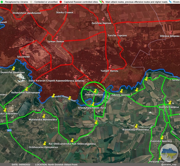 Озерное — стратегически важное село для ВСУ, поскольку с него открывается путь на железнодорожный узел в Лимане. Деоккупация села также создает плацдарм на берегу Северского Донца, который дает возможность украинским военным развивать контрнаступление.