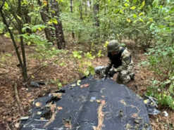 «У лісосмузі Дарницького району поліцейські виявили уламки ворожого БпЛА з нездетонованою бойовою частиною. Повідомлення про підозрілий предмет надійшло від громадян, які проходили неподалік», — зазначили у поліції.