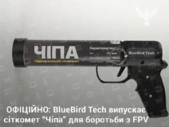 Українська компанія BlueBird Tech презентувала новий спецзасіб — сіткомет «Чіпа», який дозволяє ефективно знешкоджувати FPV-дрони на відстані до 25 метрів без створення радіоперешкод та вторинних ризиків.