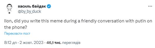 «Илон, ты написал этот мем во время дружеского разговора с Путиным по телефону?», — спросил Василий Байдак.
