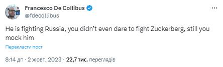«Он борется с Россией, а ты даже не решился сразиться с Цукербергом», — напомнил Маску Francesco De Collibus.