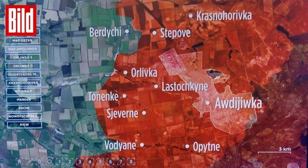 Издание BILD утверждает, что россияне якобы оккупировали Тоненькое и Орловку в 5 километрах к западу от Авдеевки.